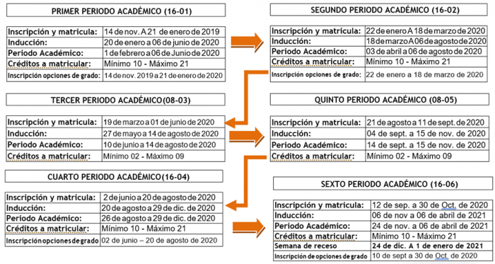 Con el propósito de ampliar las opciones de matrícula, ofrecer una variedad de cursos en diferentes periodos académicos ofertados durante el año y brindar mayores oportunidades para que los estudiantes obtengan su título y avancen en su ruta formativa, la Universidad Nacional Abierta y a Distancia – UNAD ofrece a sus estudiantes un sistema de matrícula permanente que consiste en un método de oferta de cursos distribuido en 6 periodos académicos, compuestos por 8 y 16 semanas, los cuales están establecidos en el calendario académico y se encuentran organizados de tal forma que brinden atención permanente a la comunidad académica.